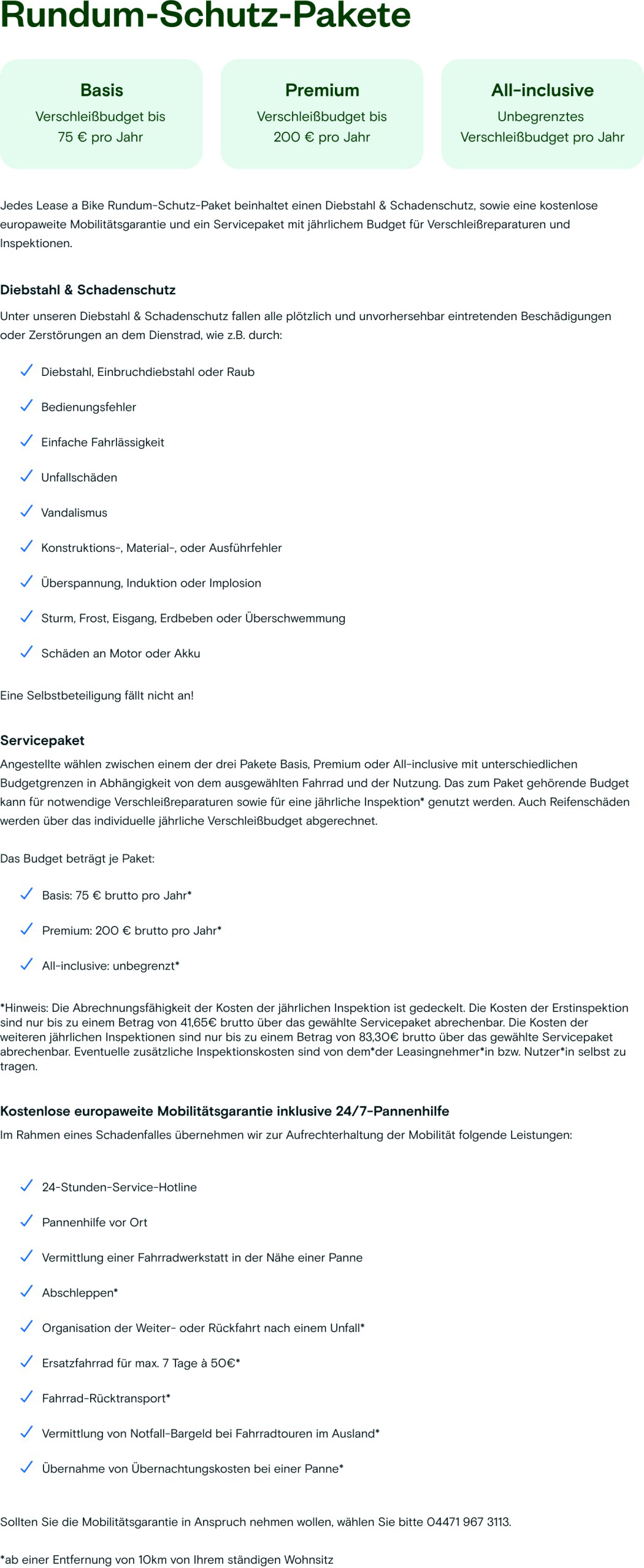 Zur Aufrechterhaltung der Mobilität sind unsere Diensträder mit einer kostenlosen europaweiten Mobilitätsgarantie abgesichert.